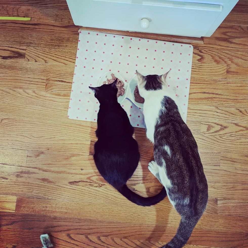 "By Sunday morning, they were eating off the same plate, occasionally licking each other on the head, and playing together," Robyn said.