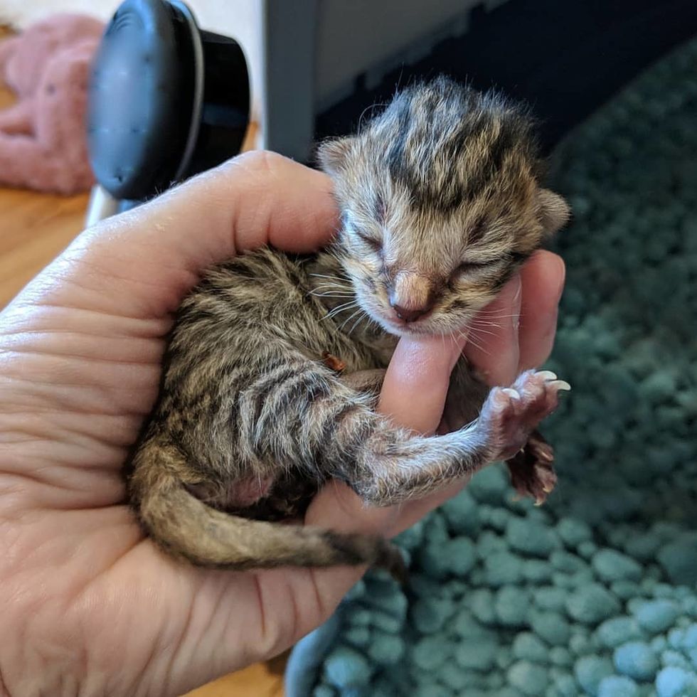 She's been doting on them with purrs and unconditional love while keeping them fed and clean around the clock.