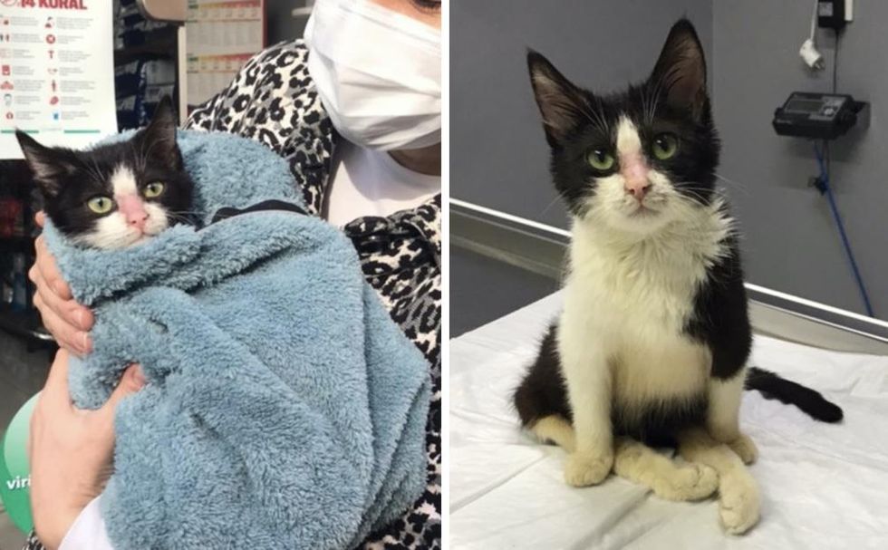 A tuxedo kitten was brought to a clinic in Istanbul, Turkey a couple of months ago. He was paralyzed in his hind quarters and surrendered to the vet. Ahsen, an animal rescuer, was contacted and asked if she could help.