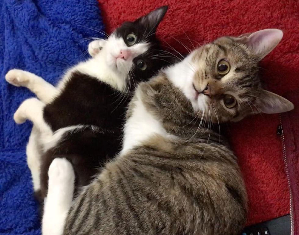 Ekim has taken on the role of big sister and constantly showers her little brother with purrs and snuggles.