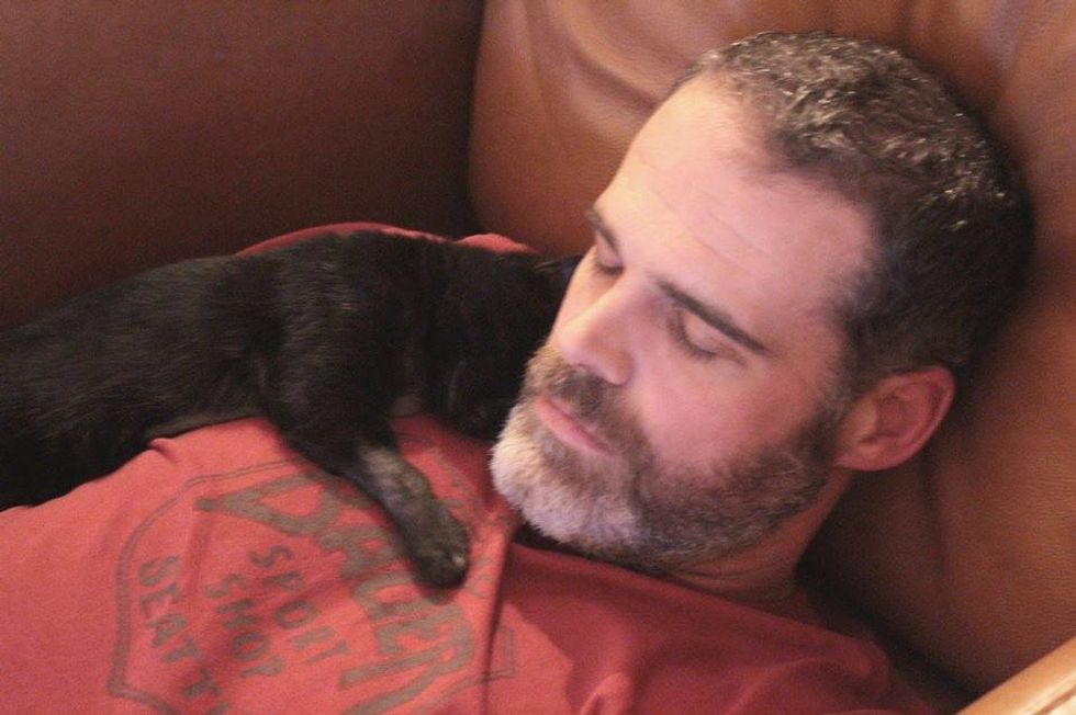 Nothing makes Shadow happier than snuggling with her human dad, her rescuer.