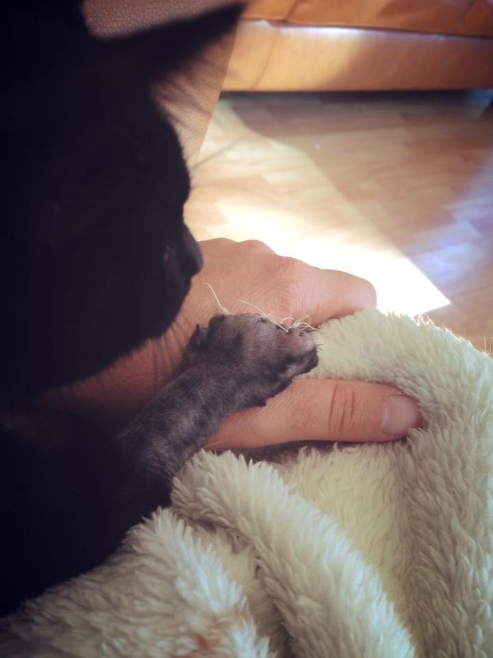 She still loves to reach out her front paw for attention and cuddles. Some things never change.