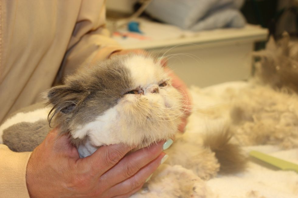 After the haircut, he was able to enjoy some pets and head scratches from the staff.