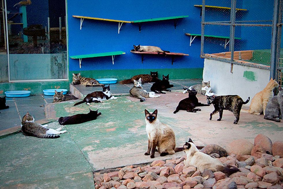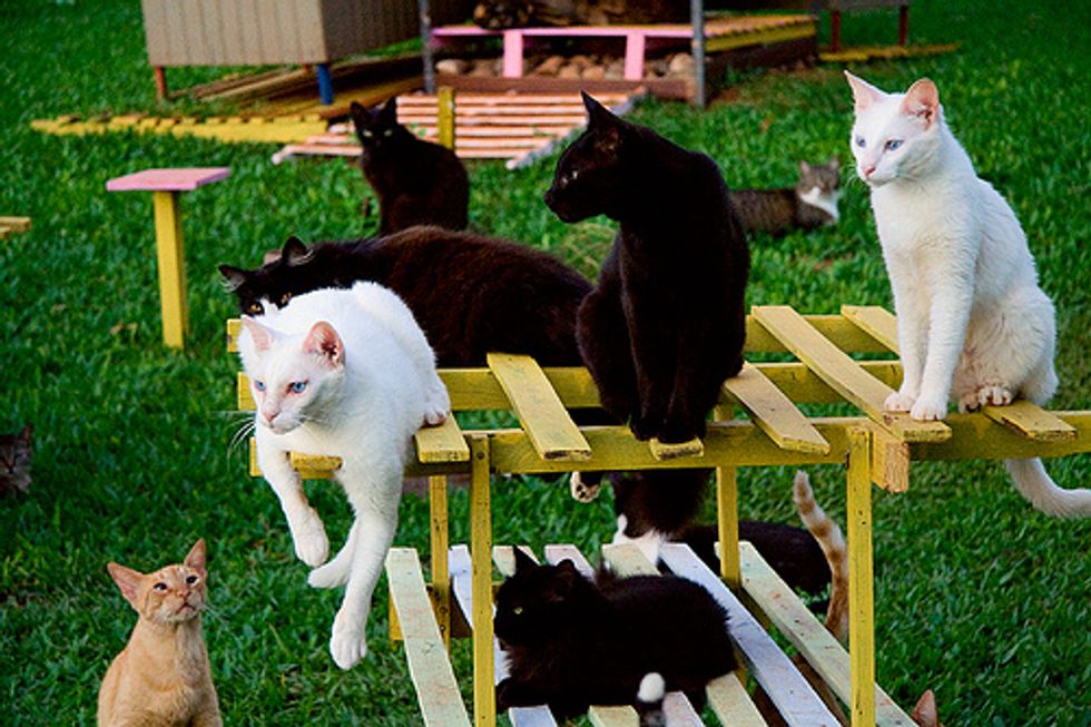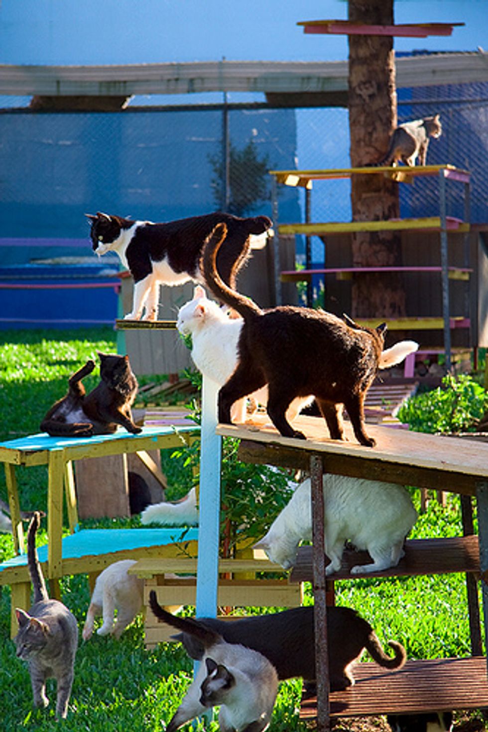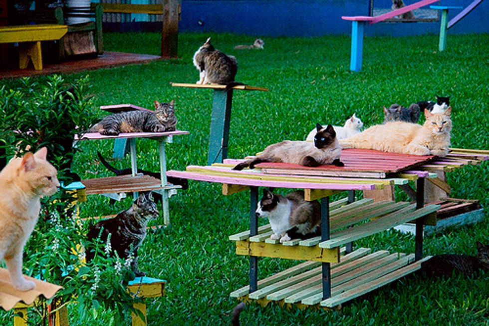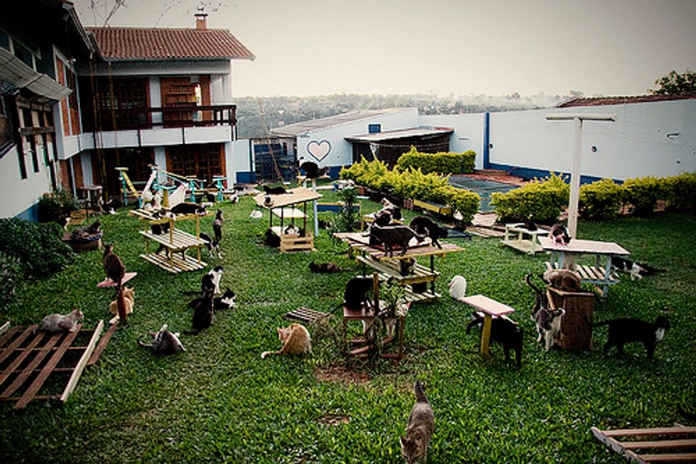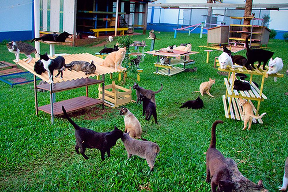 This beautiful cat sanctuary was started by a couple in Foz do Iguaçu, Brazil. There are approximately 300 cats with plenty of food, vet care and a plethora of love.