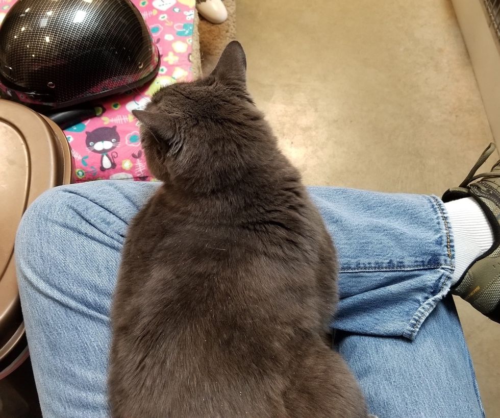 A few weeks ago, John, who fosters for Purrfect Pals, came to visit Roxanne. He sat down next to her. After a minute of adrenaline fueled fight-or-flight time, Roxanne decided to stay as she realized that he meant no harm.