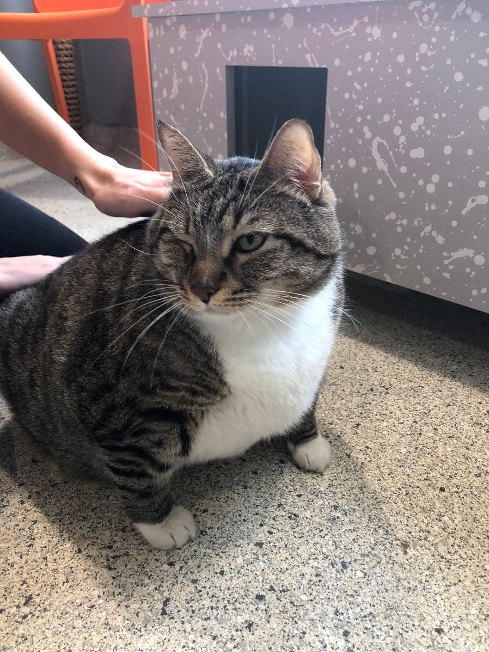 A big tabby cat came to the shelter, looking for a forever home and some help to get in shape.