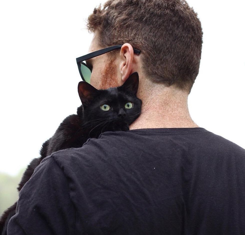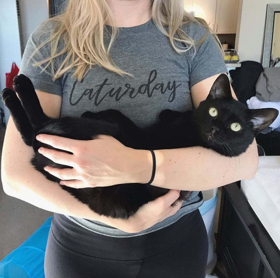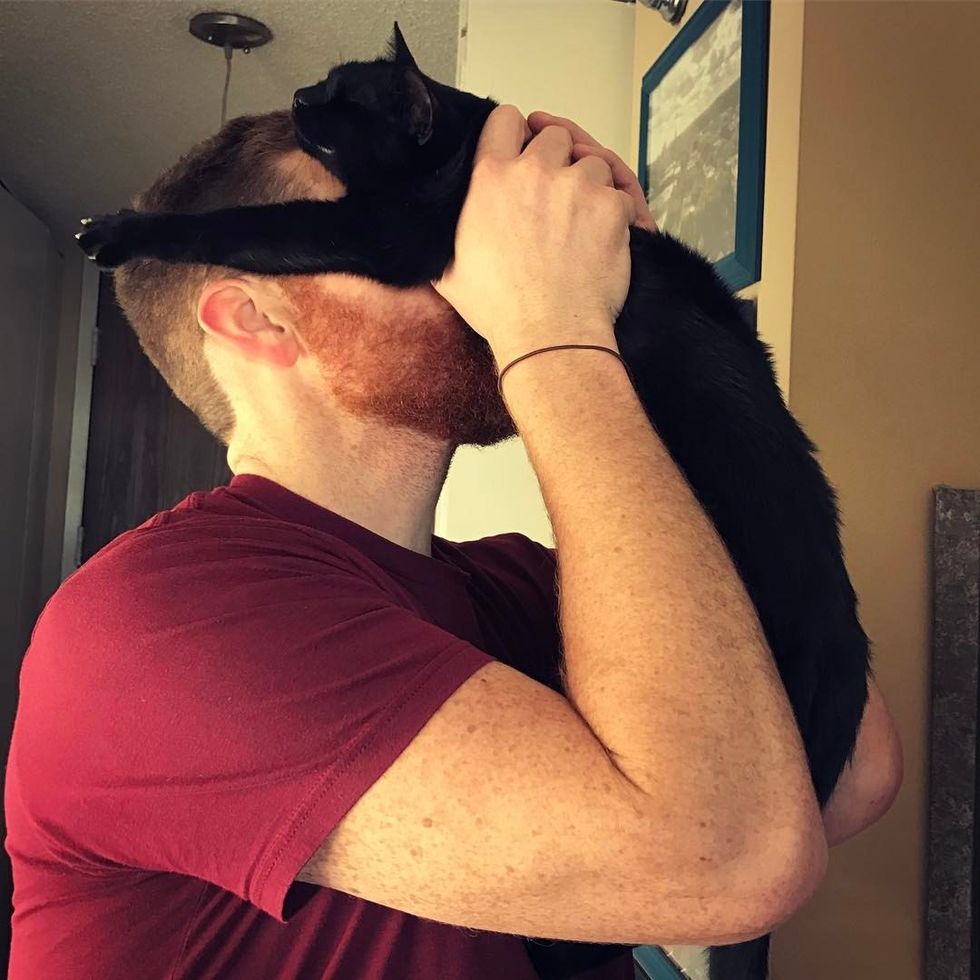 "He loves to be near us. If we're watching TV we'll put our legs up on the ottoman and Mikita will settle in right on our legs. He loves to be held and is a total shoulder cat," Andrea added.