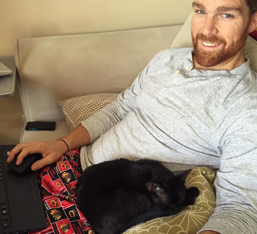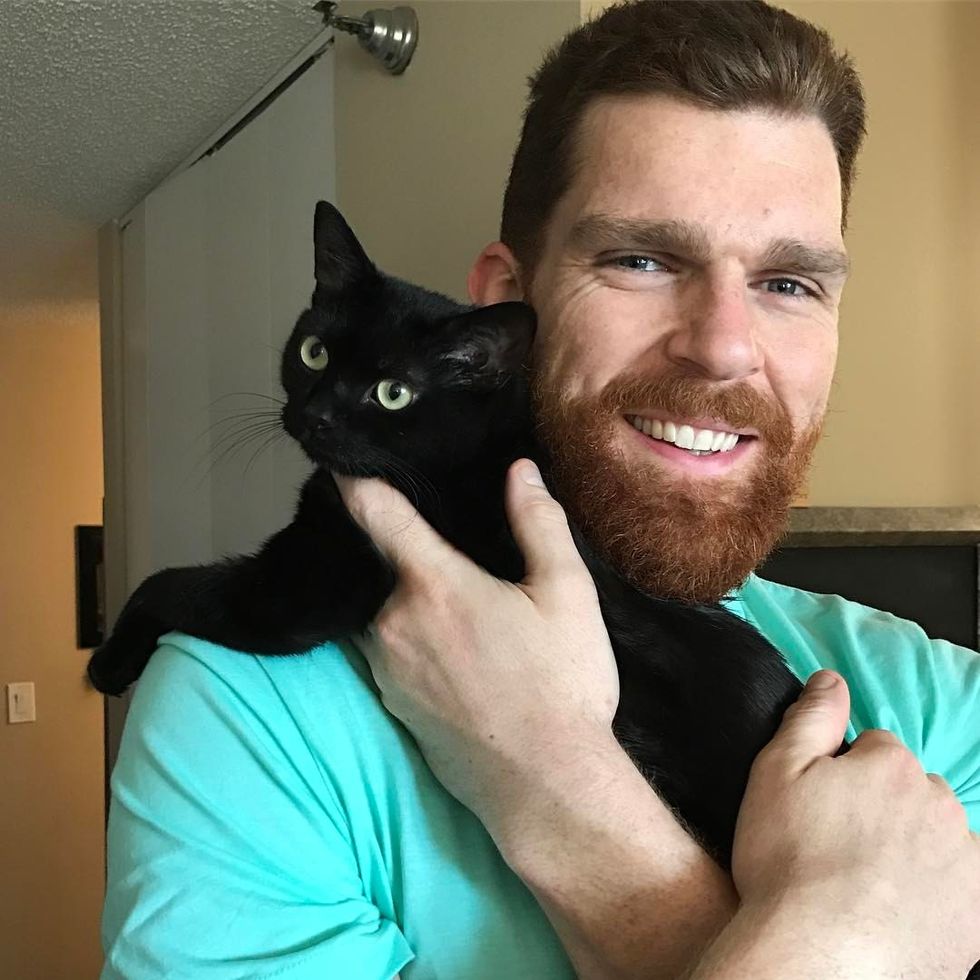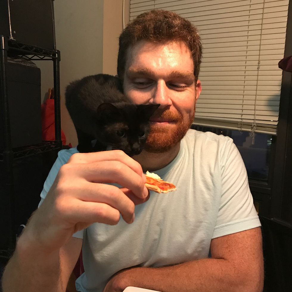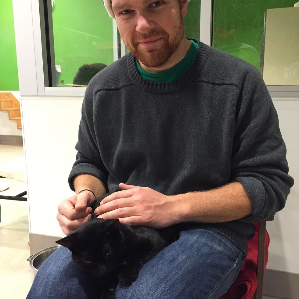 Rich couldn't help but smile from ear-to-ear with the friendly shelter cat in his lap. Mikita rubbed his face against him and wouldn't let him go.