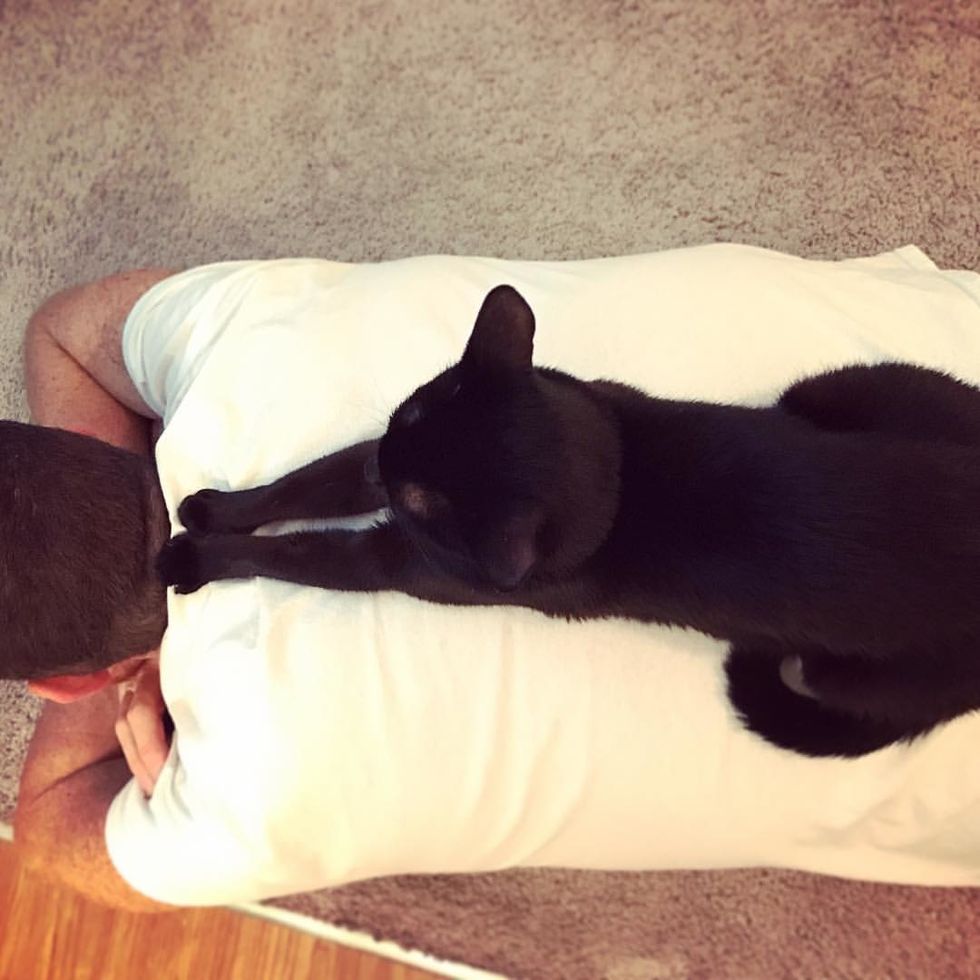 Giving Cat Dad a back rub after a long day of work.