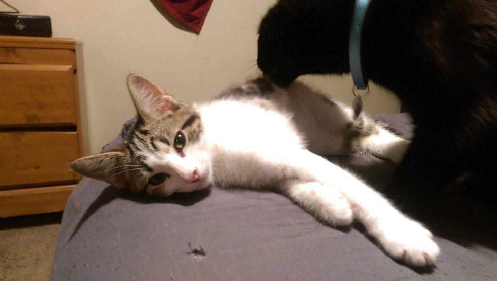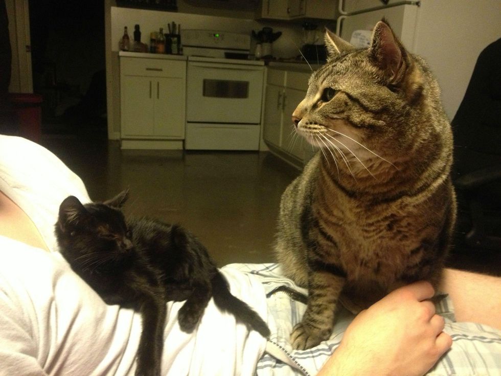 The kitten was eager for Tyrol's affection and would follow him everywhere he went and cuddle up to him whether he liked it or not.