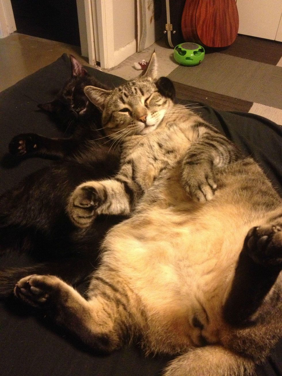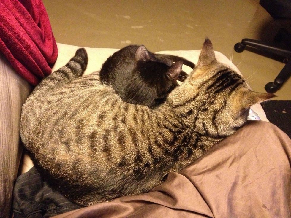 The two became very close like two peas in a pod. Tyrol watched his little brother from another mother grow into a gorgeous panther kitty.