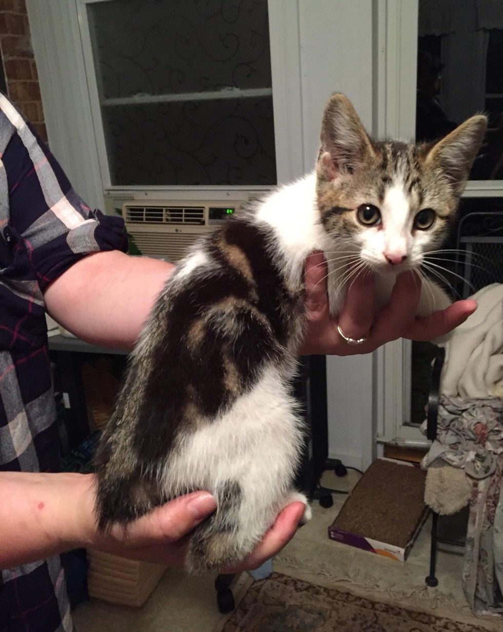 "As my sister and I returned from Walmart late in the evening... I heard a distinct mewing. It was then I saw this little derp bounding toward me crying out... The amount of fleas were overwhelming. Her ear mites were severe."