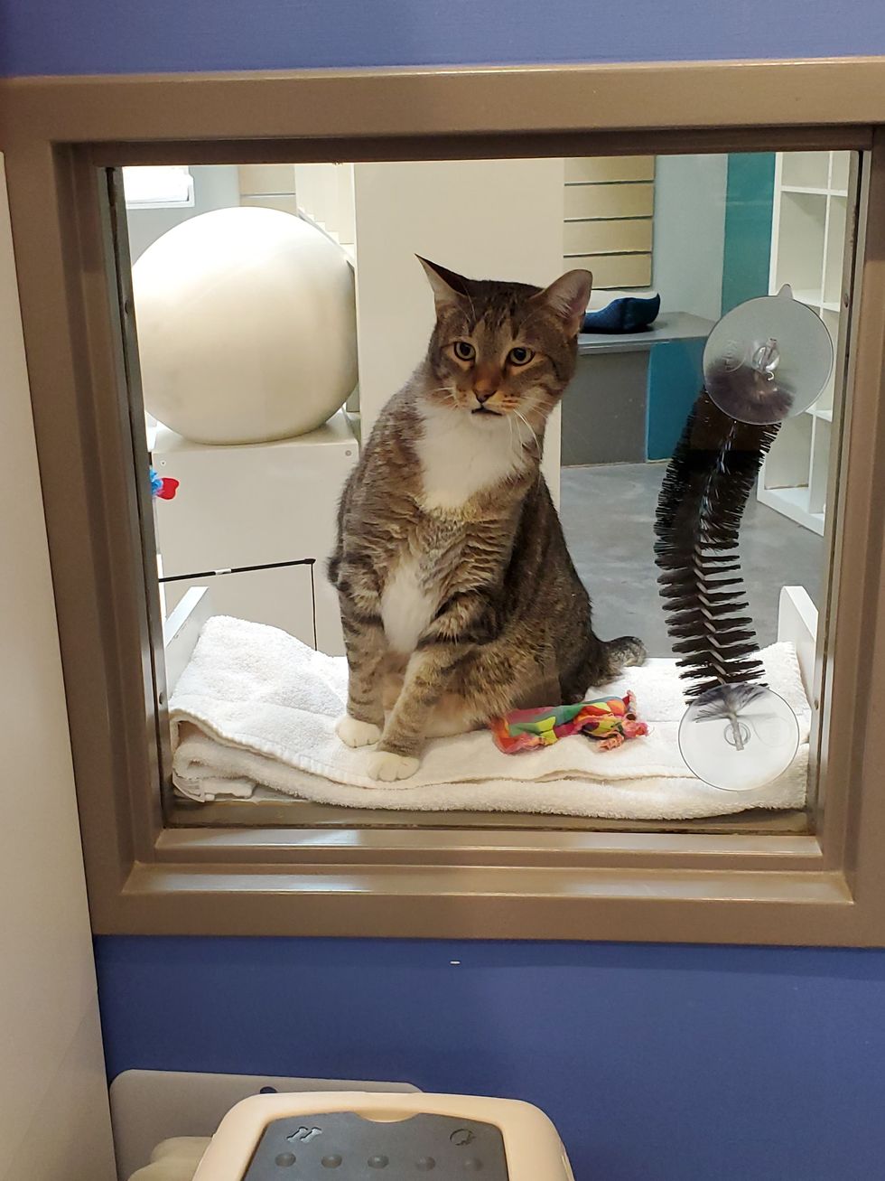 "If someone out there is looking for a clever cat that gets along with dogs but does not get along with closed doors, we have someone they really need to come and meet."
