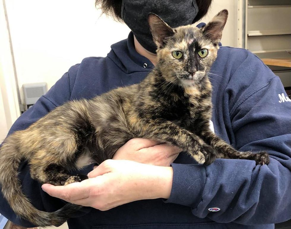 The kind people scooped her up and brought her in their car to warm her up. The friendly stray started rumbling with her adorable purrs and continued throughout her ride. Catsnip Etc, an all-volunteer cat rescue in Goshen, Indiana, was contacted and stepped up to help.