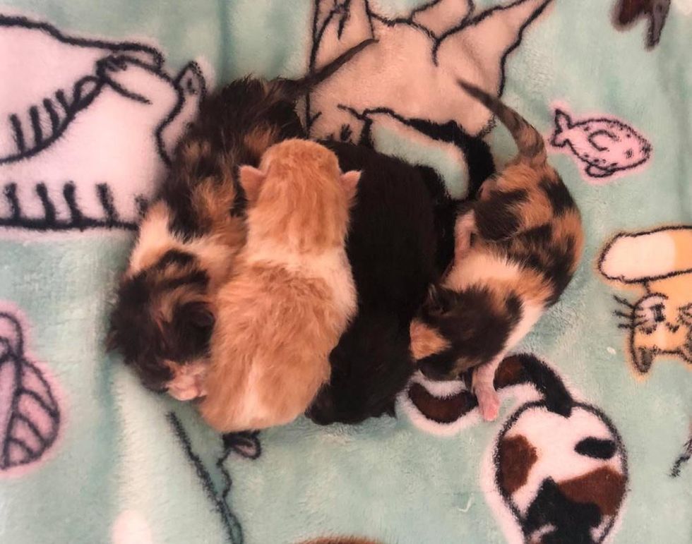 Two days later, she went into labor and by the morning of Valentine's day, she brought four beautiful, healthy babies into this world. These lucky kittens would never have to live a day on the street, braving the bitter cold.