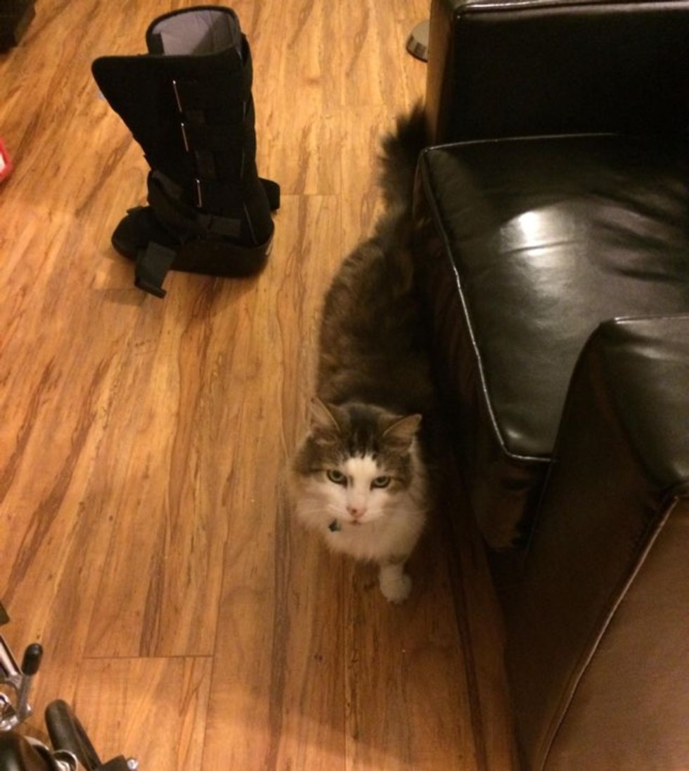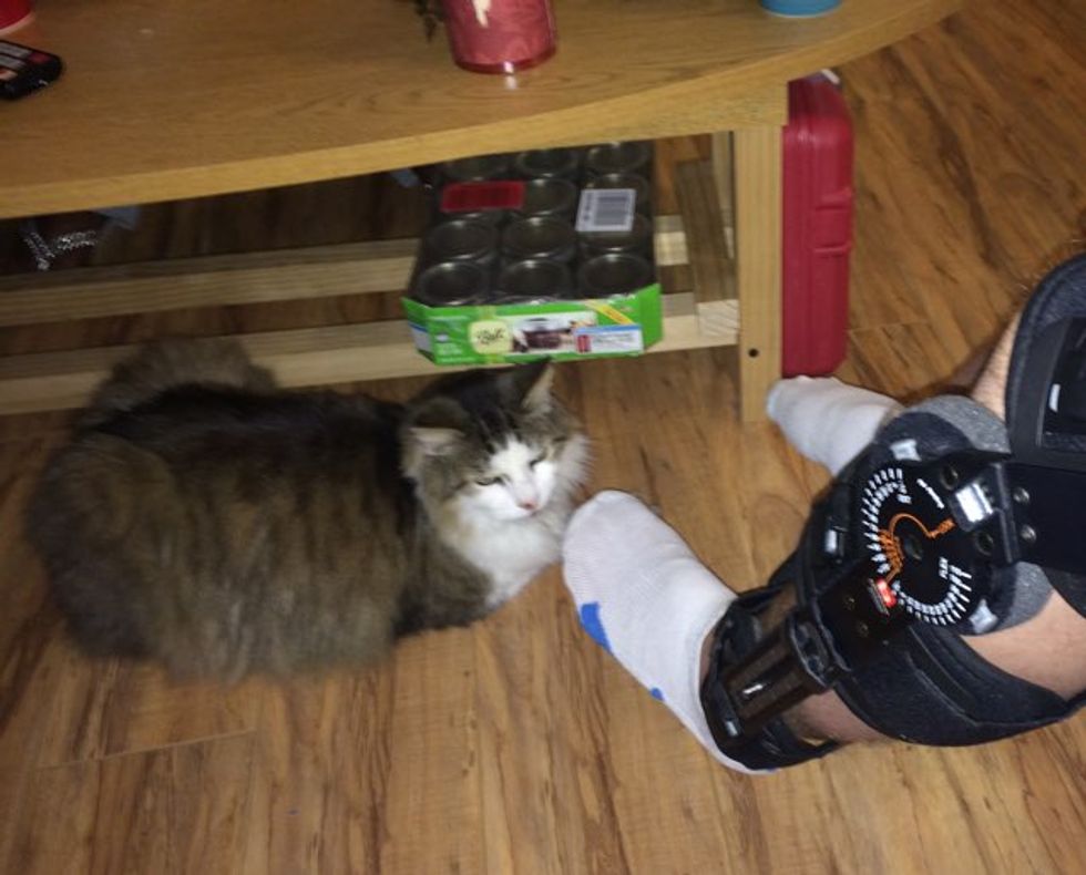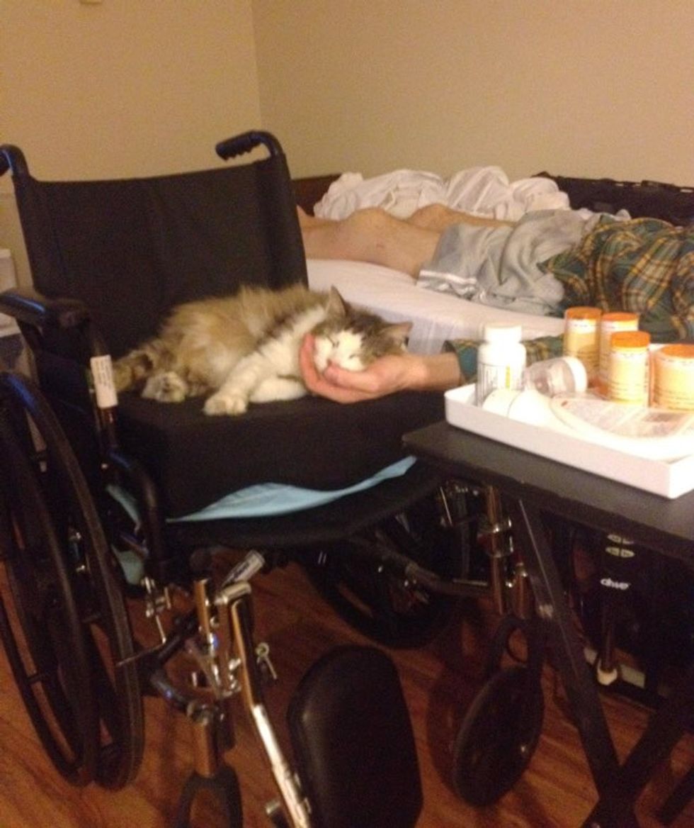 "Since I've come home from the hospital, he's rarely left my side," said kitty's dad who was injured in a car accident. (reddit)