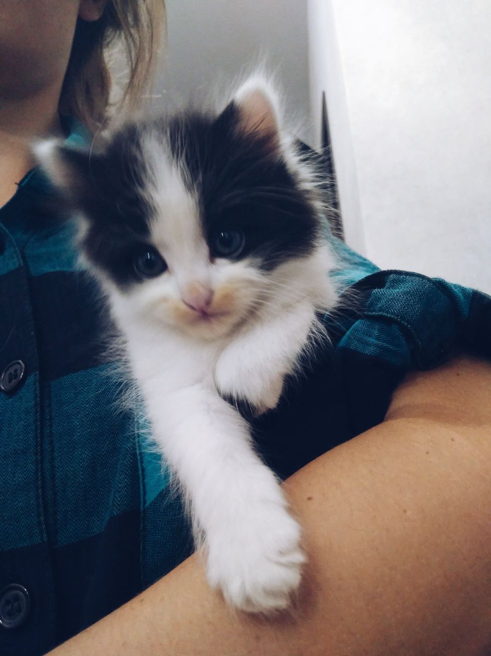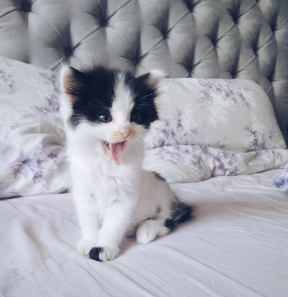 A few months ago, Mila Litvinova was taking a walk in the woods when she heard a kitten's cries. She followed the sound all the way to some thorny bushes and discovered a little stray, meowing loudly for help.