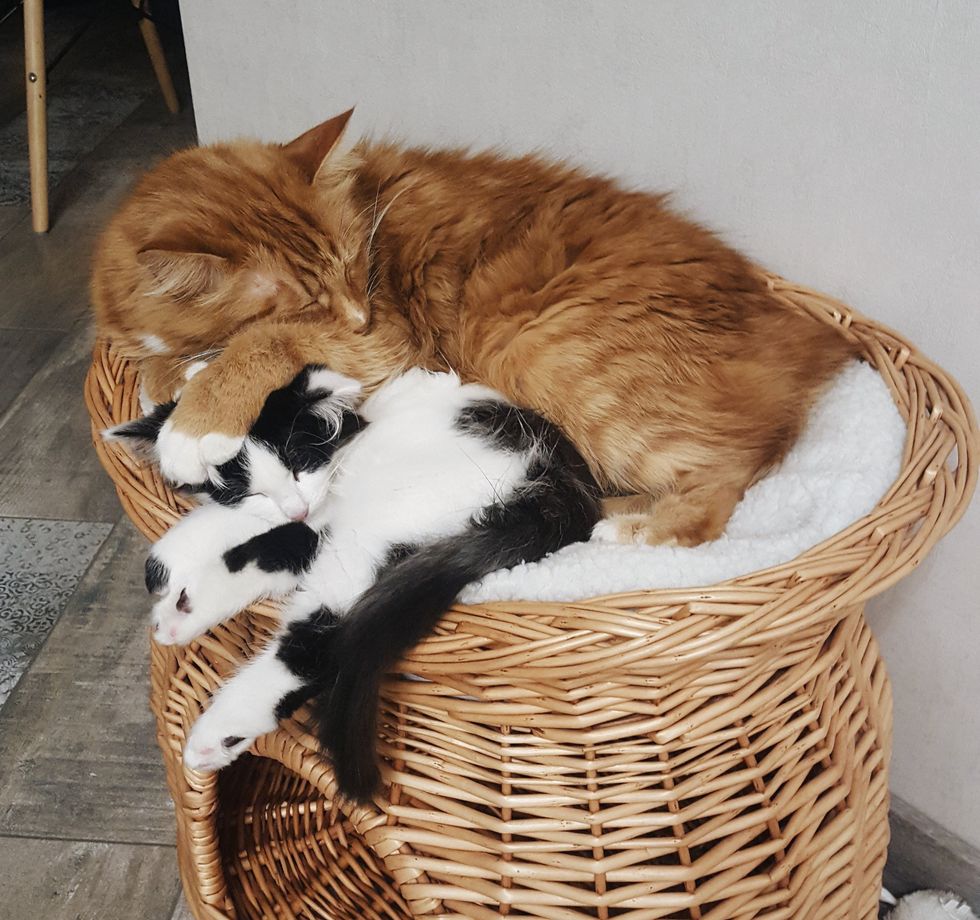 The ginger cat puts up with her unbridled energy and showers her with love. They share an incredibly close bond.