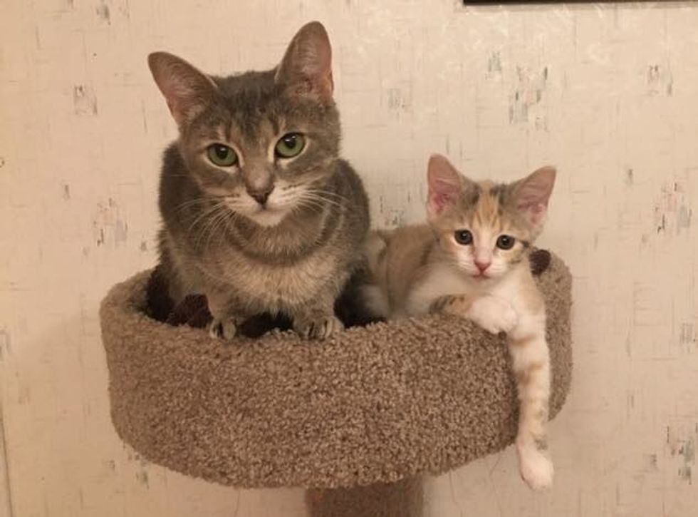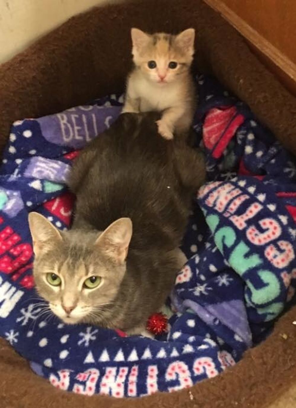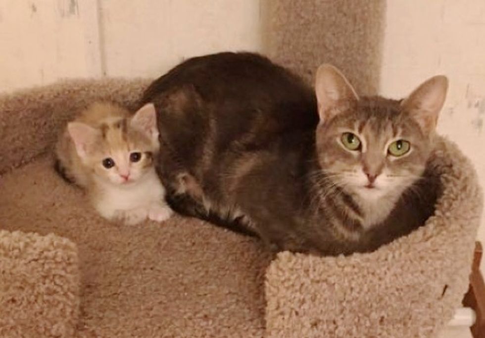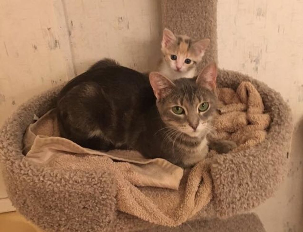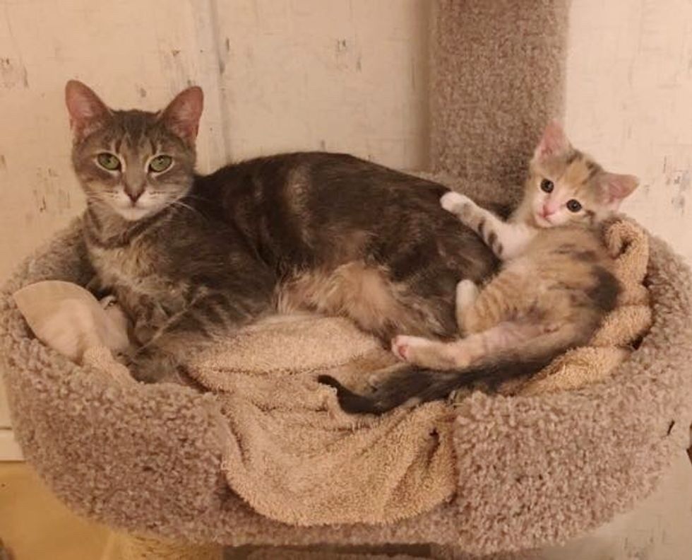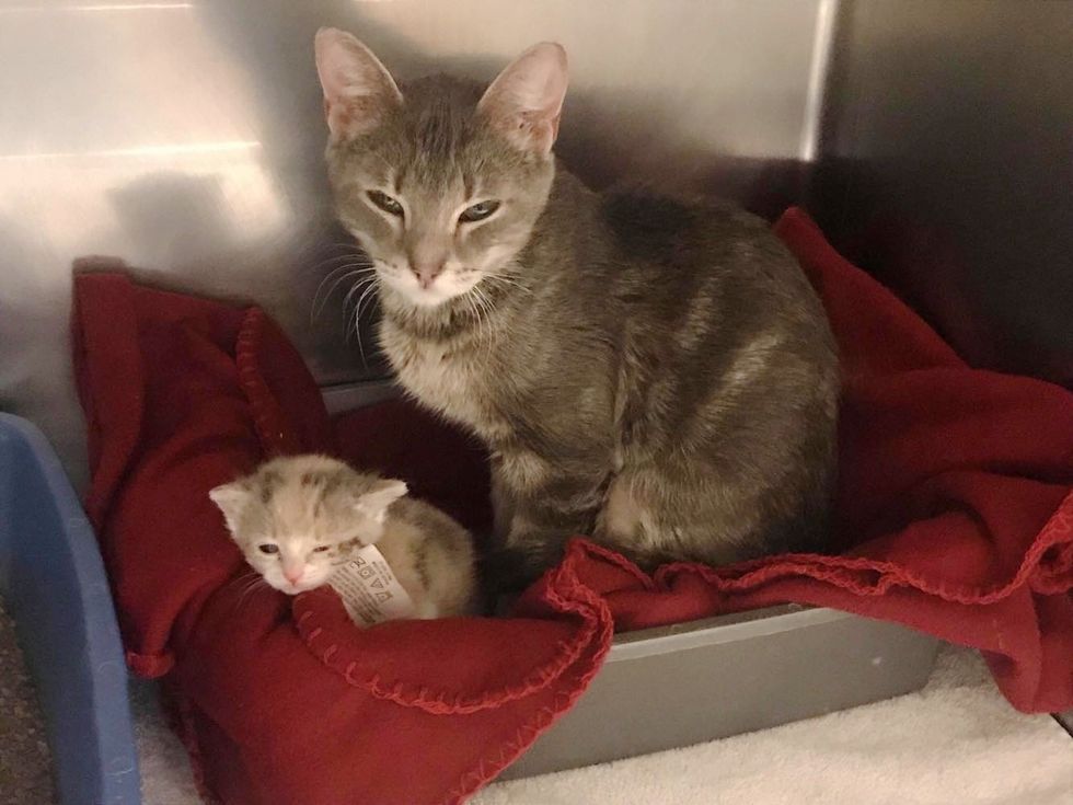 They were turned into the local humane shelter, and right away staff noticed just how close they were. The protective mom had her kitten next to her to ensure she was safe while the kitten leaned on her for comfort.