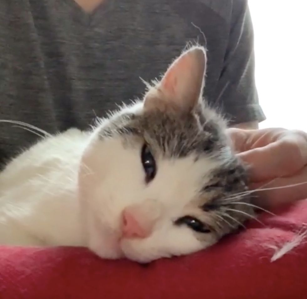 Bun is purring up a storm in the comfort of her foster home, away from the streets and the cold.