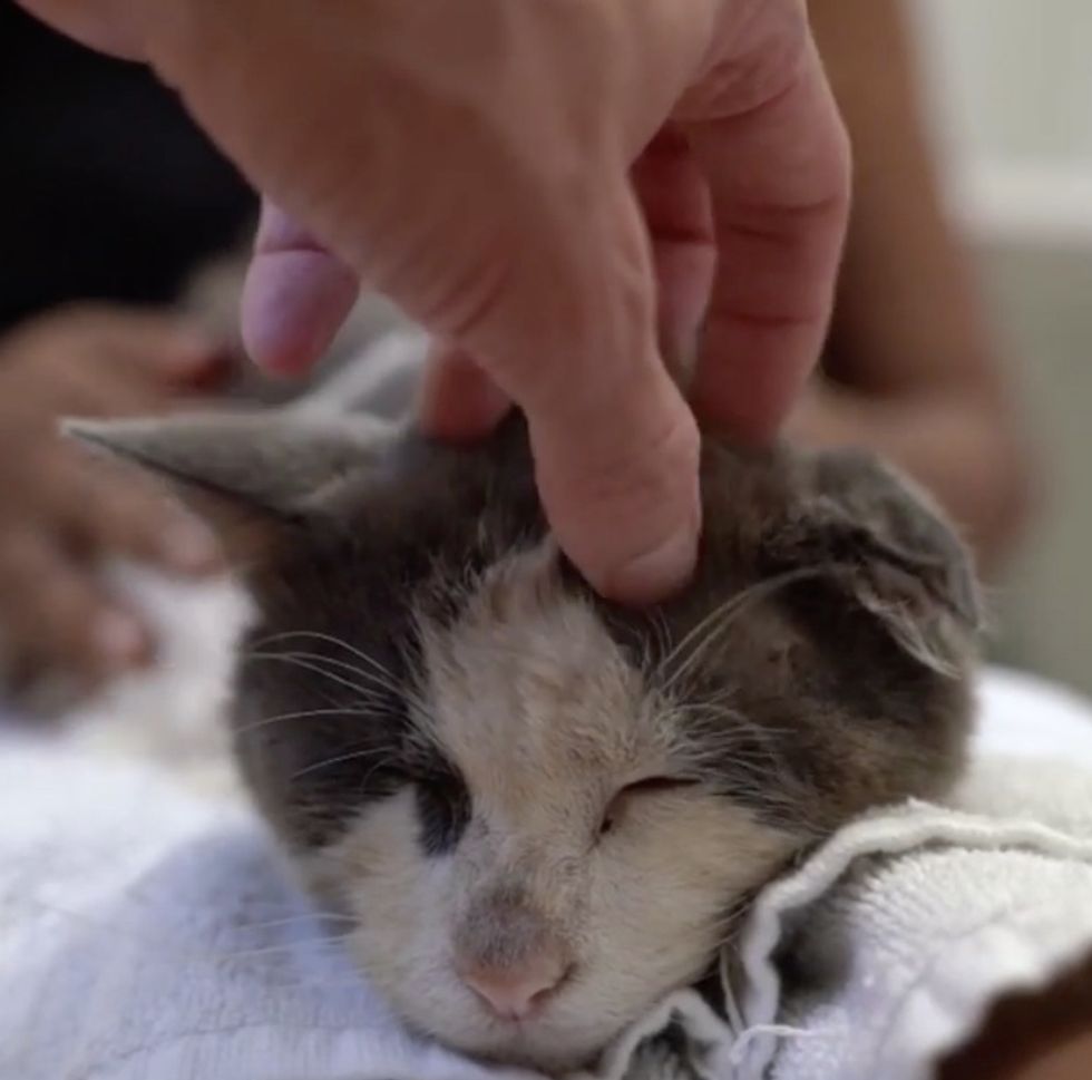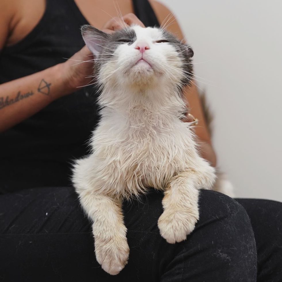 With a lot of love and around-the-clock care, Teddy continued to make progress. A few days ago, the sweet kitty surprised everyone when he decided to give himself his very first bath.