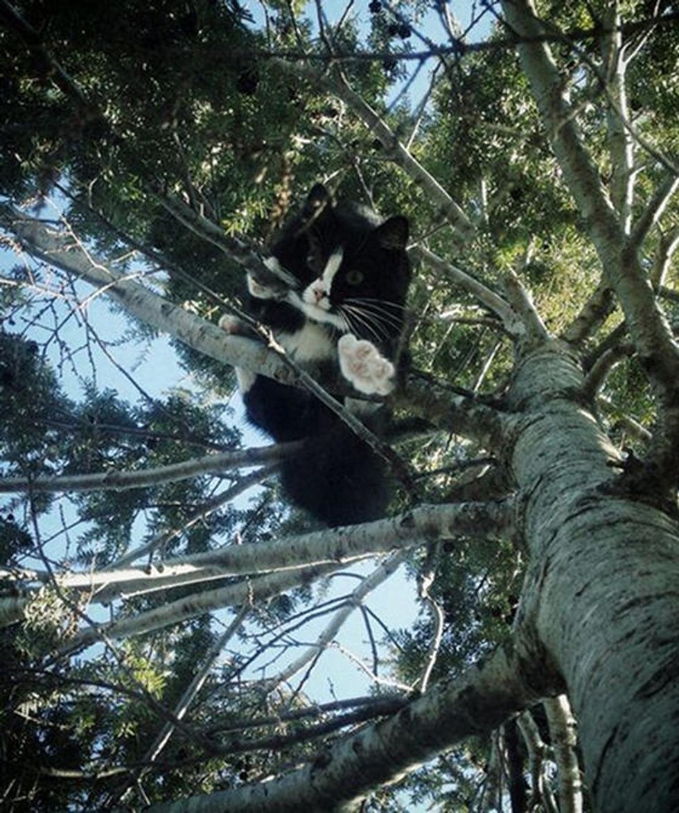 This mischievous tuxedo somehow ended up at the top of a pine tree for 3 days. But Spaz the cat is super excited to be reunited with her family thanks to Animal Rescue League of Boston.