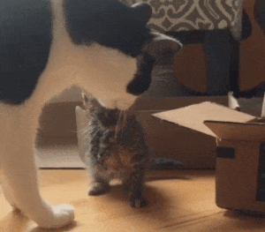 "When he sees new kittens for the first time, his gets his 'Oooh, Kittens!' face- his eyes get big, his ears perk up, and he just oozes excitement!"
