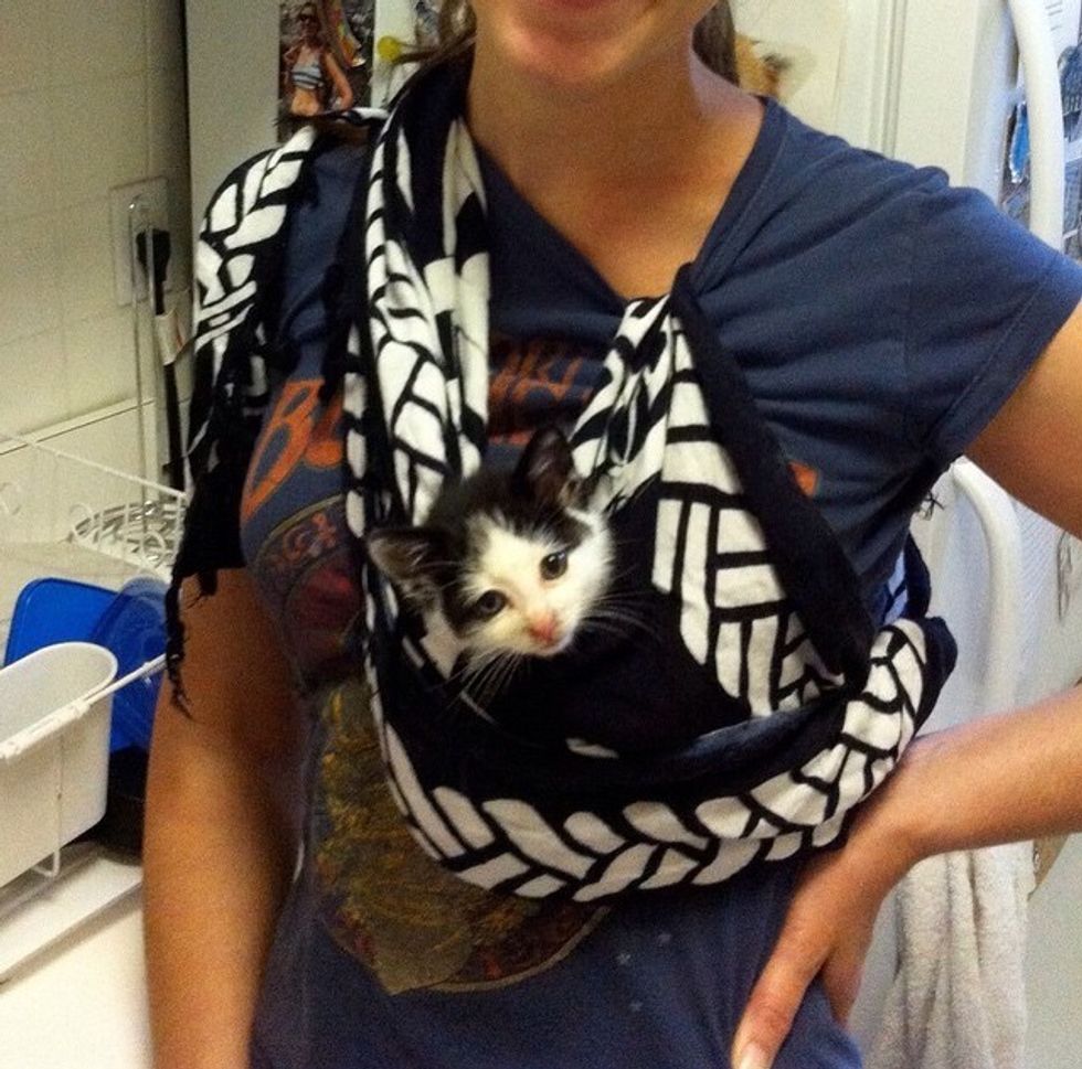 Jen (@pokeypotpie) went to the Animal Rescue League of Boston to pick up her new foster--Pokey who was dirty, hungry and very loud. He kept meowing nonstop until Jen cuddled him in her loving arms. "He cried and cried if I left him alone, so I started swaddling him and carrying him around the house," Jen told Love Meow.