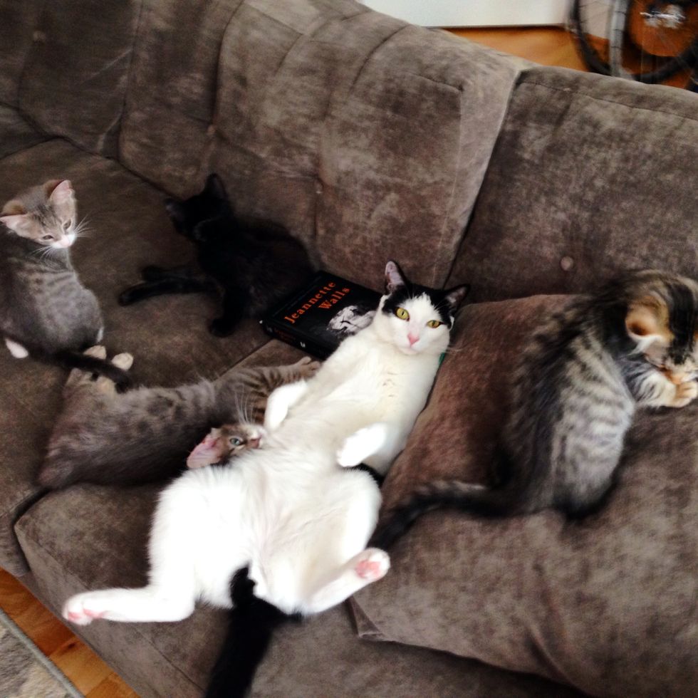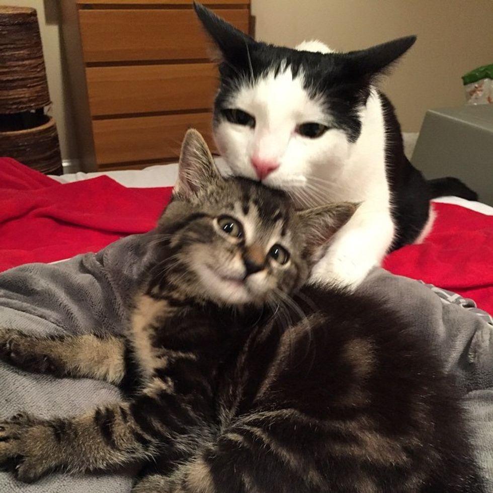 While Pokey does great with litters, he's even more amazing with single kittens. He cares for them and keeps them company at all times to make sure they feel loved.