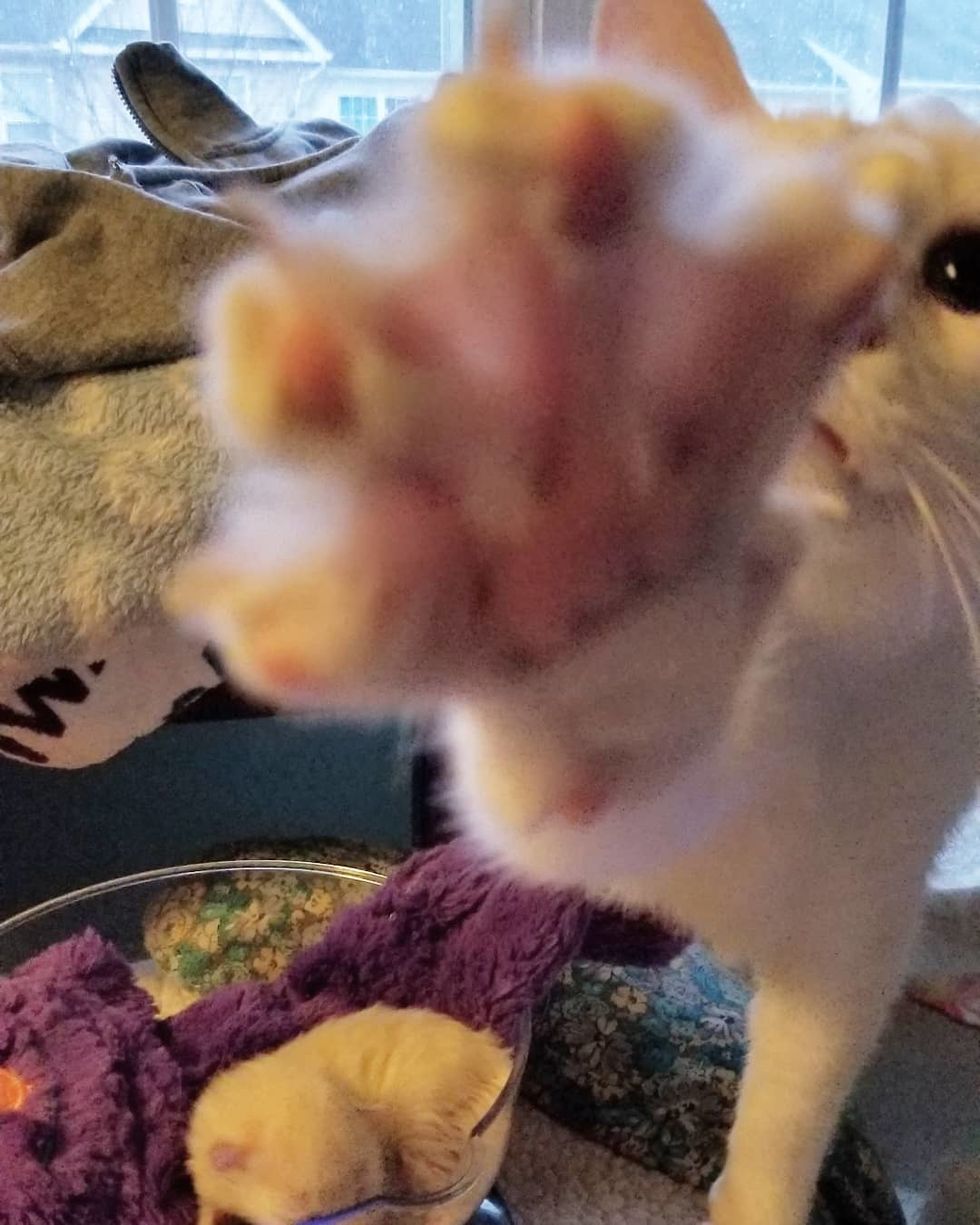 Jubilee has reached one milestone after another with her surrogate dad by her side, cheering her on. The little kitten is now eating like a champ and getting bigger and stronger every day.