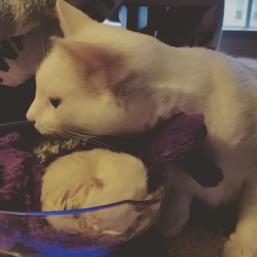 As soon as they arrived, a nurturing cat named Benny could sense that these fur babies needed some serious TLC.
