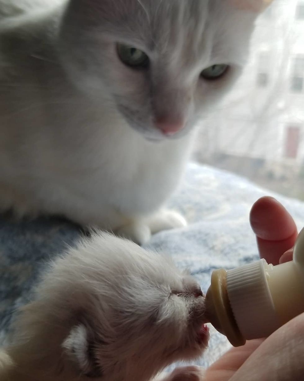 Ellen Carozza, Feline Licensed Veterinary Technician of NOVA Cat Clinic (in Virginia), took in a pair of newborn kittens from a local rescue group, Operation Hood. The kittens were severely ill.