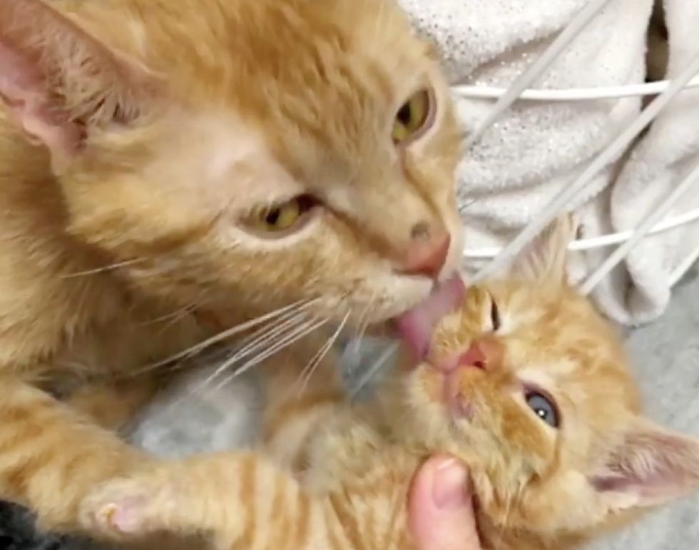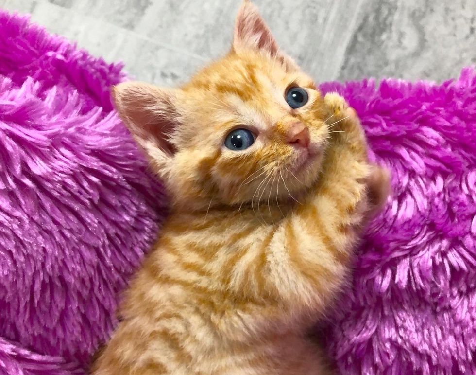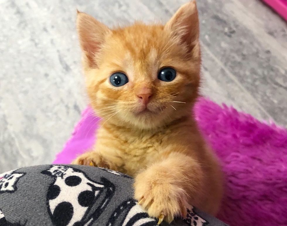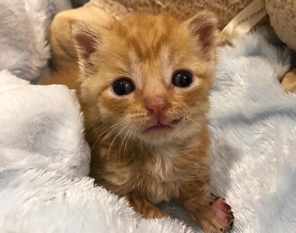 Mellissa, founder of Tiny but Mighty Kitten Rescue (in Cornwall, Ontario, Canada), was contacted about the little orphan in need. "When I got the call about the kitten and found out he was also an orange tabby, I knew I had to take him," she shared.