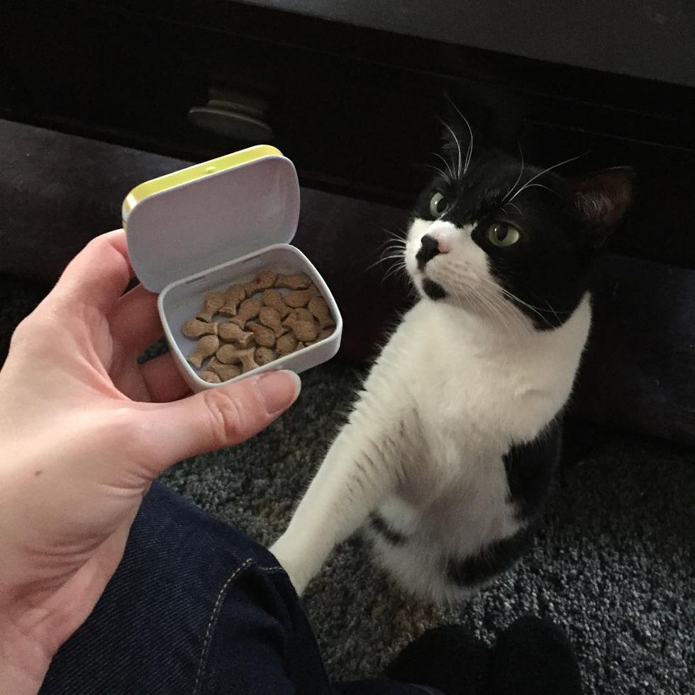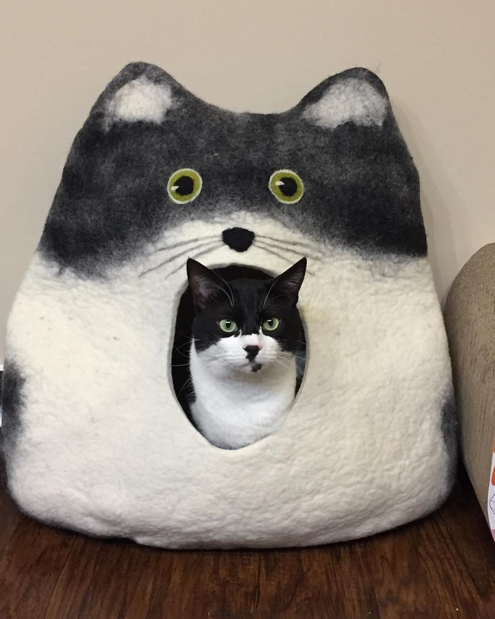 While he was hiding in a cat cave as usual, someone walked into the room and started playing with the kitties there.