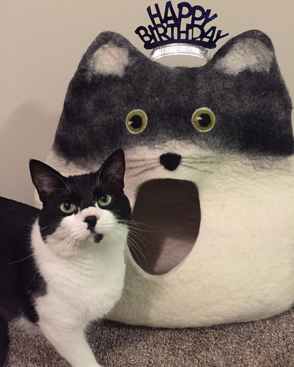 Lauren gave him all the time that he needed to get accustomed to home life. With lots of love and patience, Batman slowly came out of his shell, and after a few months, he began to act like a normal cat, and made up for his lost kittenhood.