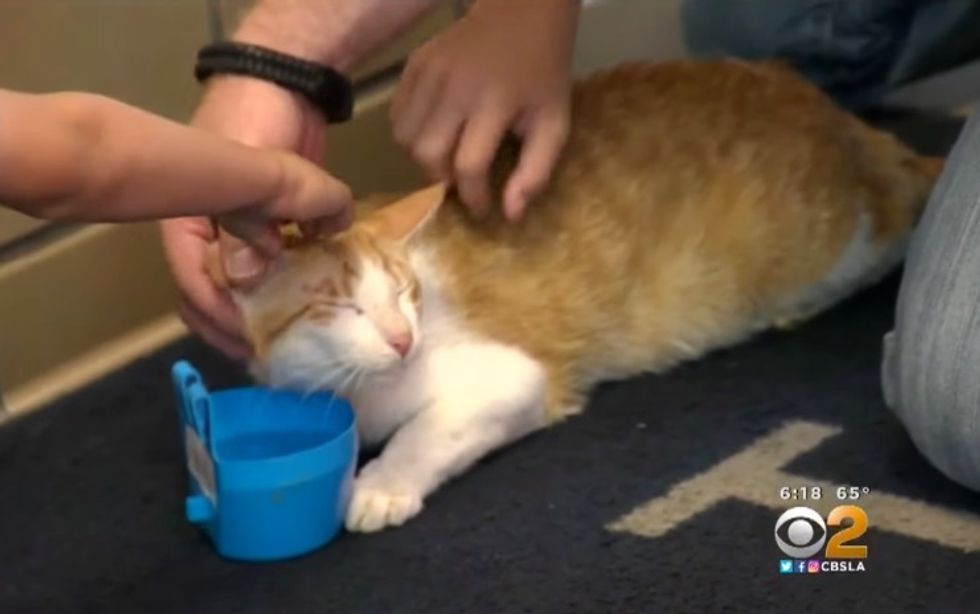 After traveling across the globe, Mr. Meowgi finally arrived in Los Angeles, and was immediately welcomed by his family.