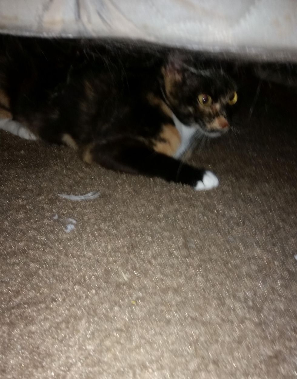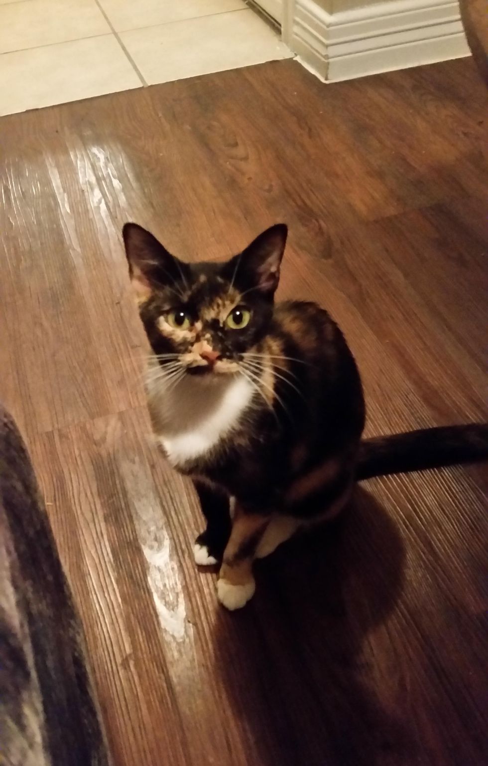 "This little gal literally walked into my apartment two days before the hurricane hit," reddit user other_other_barry shares with Love Meow. "I posted signs all over my apartment complex and haven't gotten any word so yea, I guess I have a cat now!"