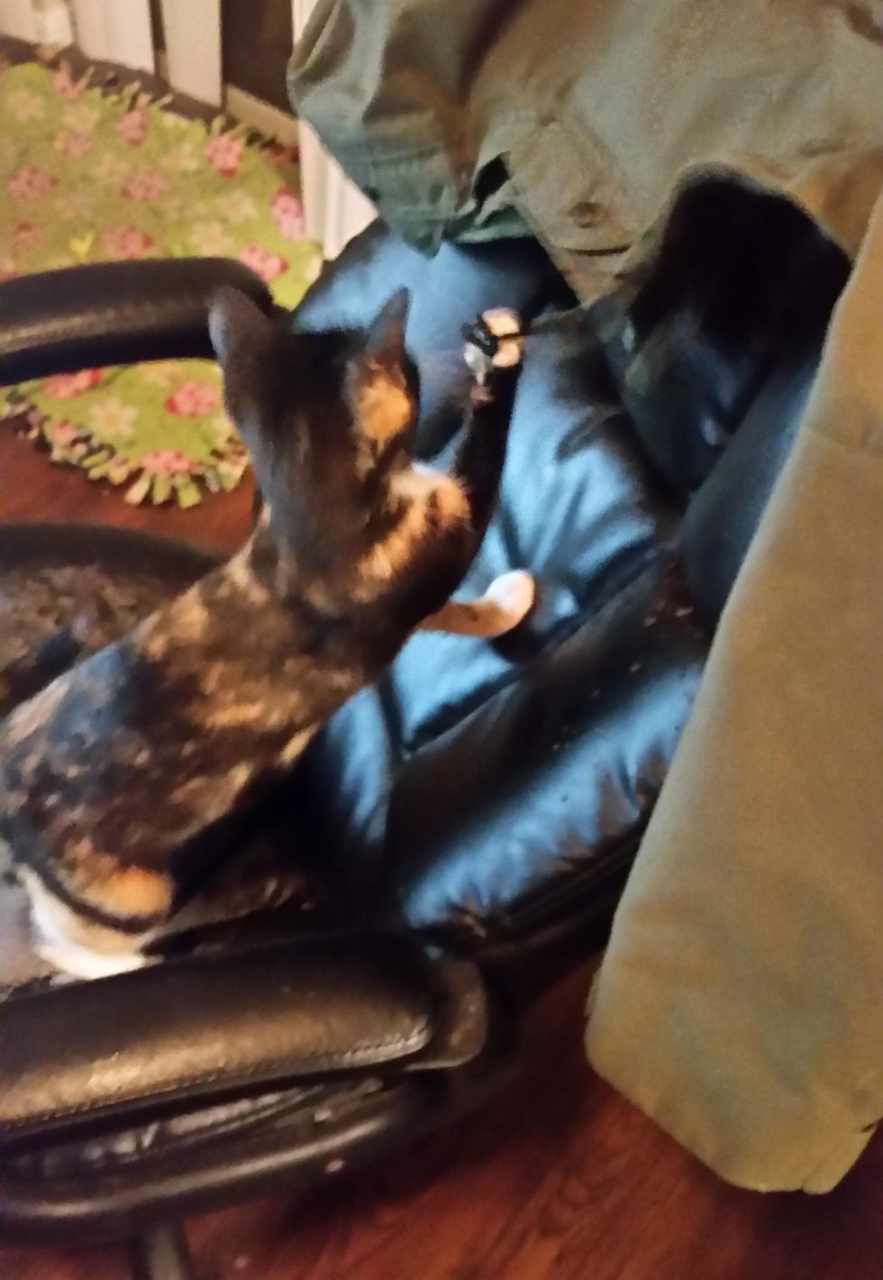 Once she discovered her human's office chair, she decided to claim it as her own.