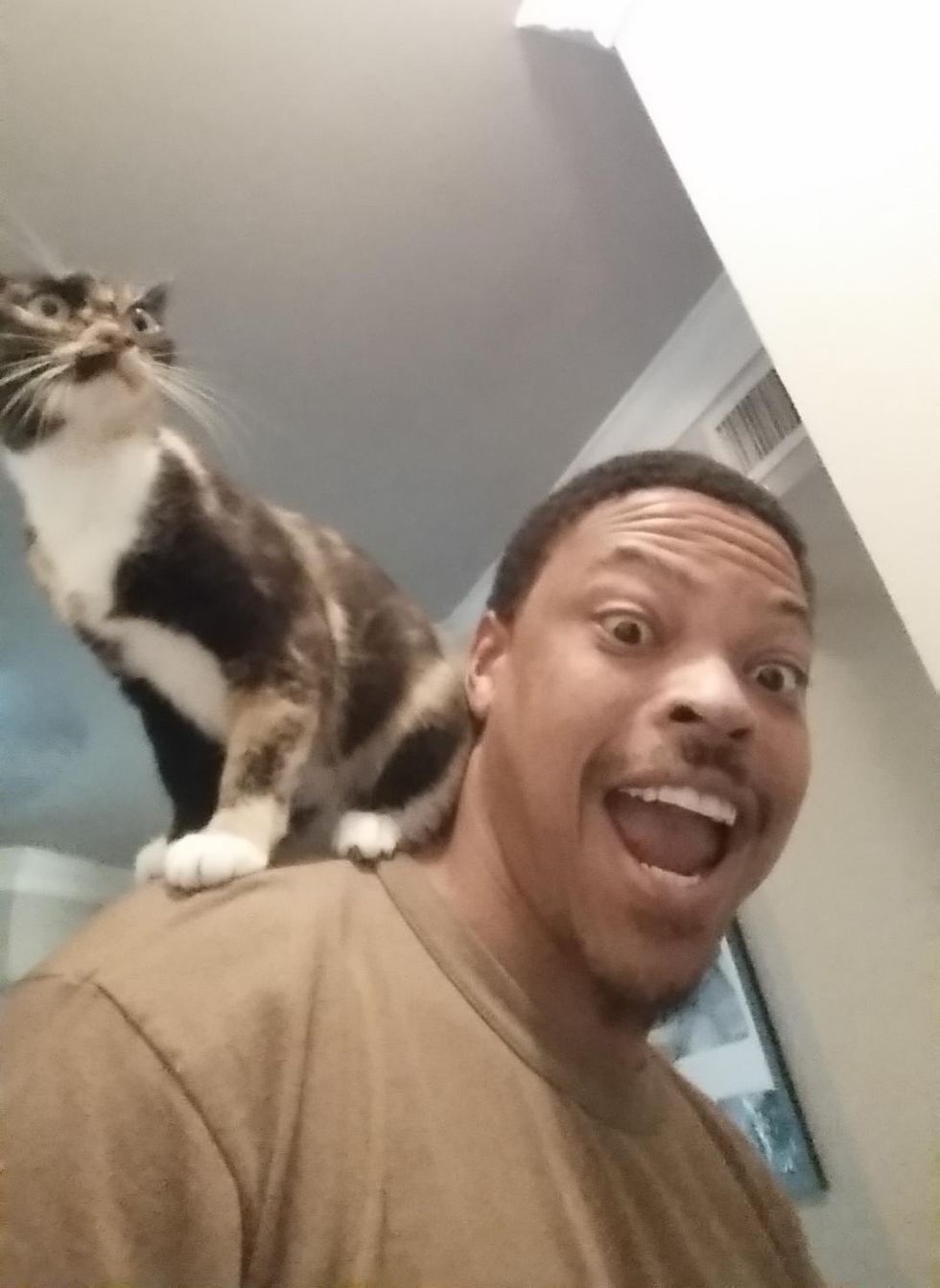 A Texan was very surprised when a cat wandered into his apartment right before the unprecedented storm raged over Texas.