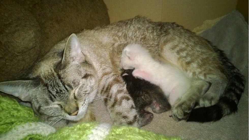 "She had come from a hoarding situation where many of the cats had passed, and she'd had two kittens, but didn't know how to care for them," Lia, volunteer of Purrfect Pals, told Love Meow.
