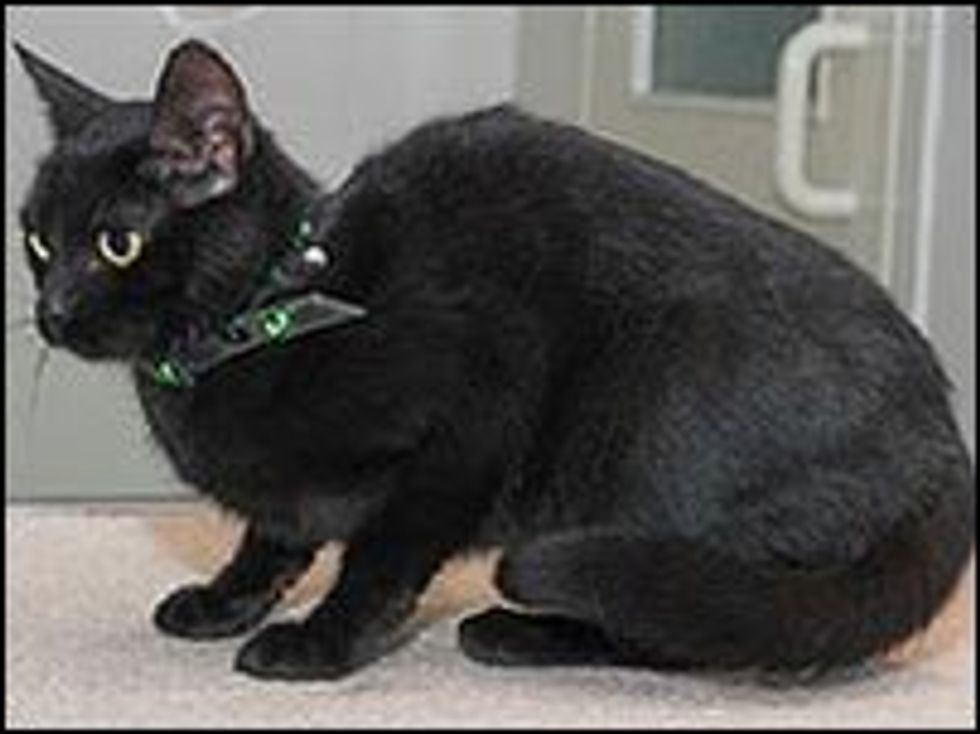The cat was wearing a distinctive collar decorated with green cat's eyes. The animal charity said that it is likely that she was abandoned by her owner.