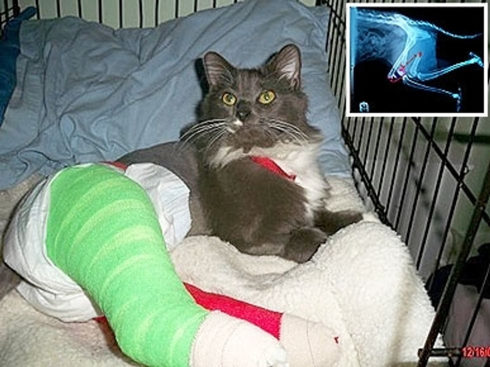 A kitty named Giggle-Blizzard who left home on November 15 last year, crawled more than a mile to get home after being hit by a car. This incredible story got attention from around the world. Today Giggle-Blizzard's cast is finally off his left leg.