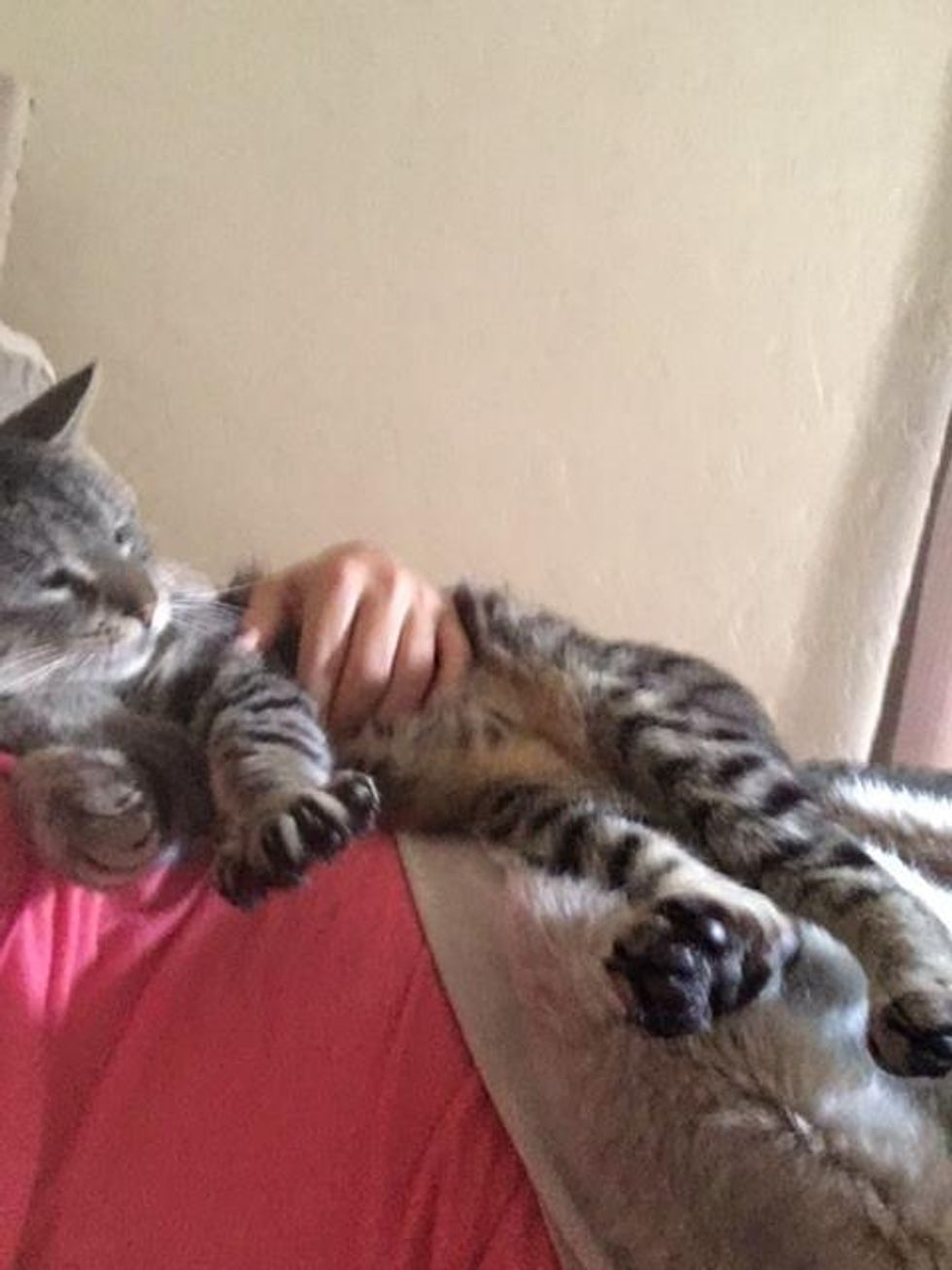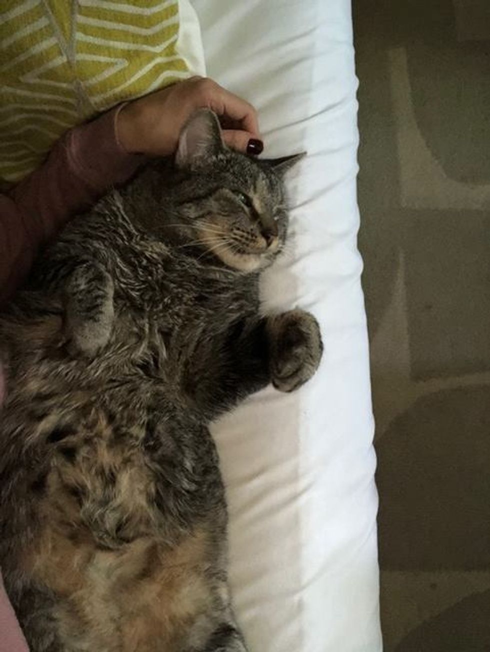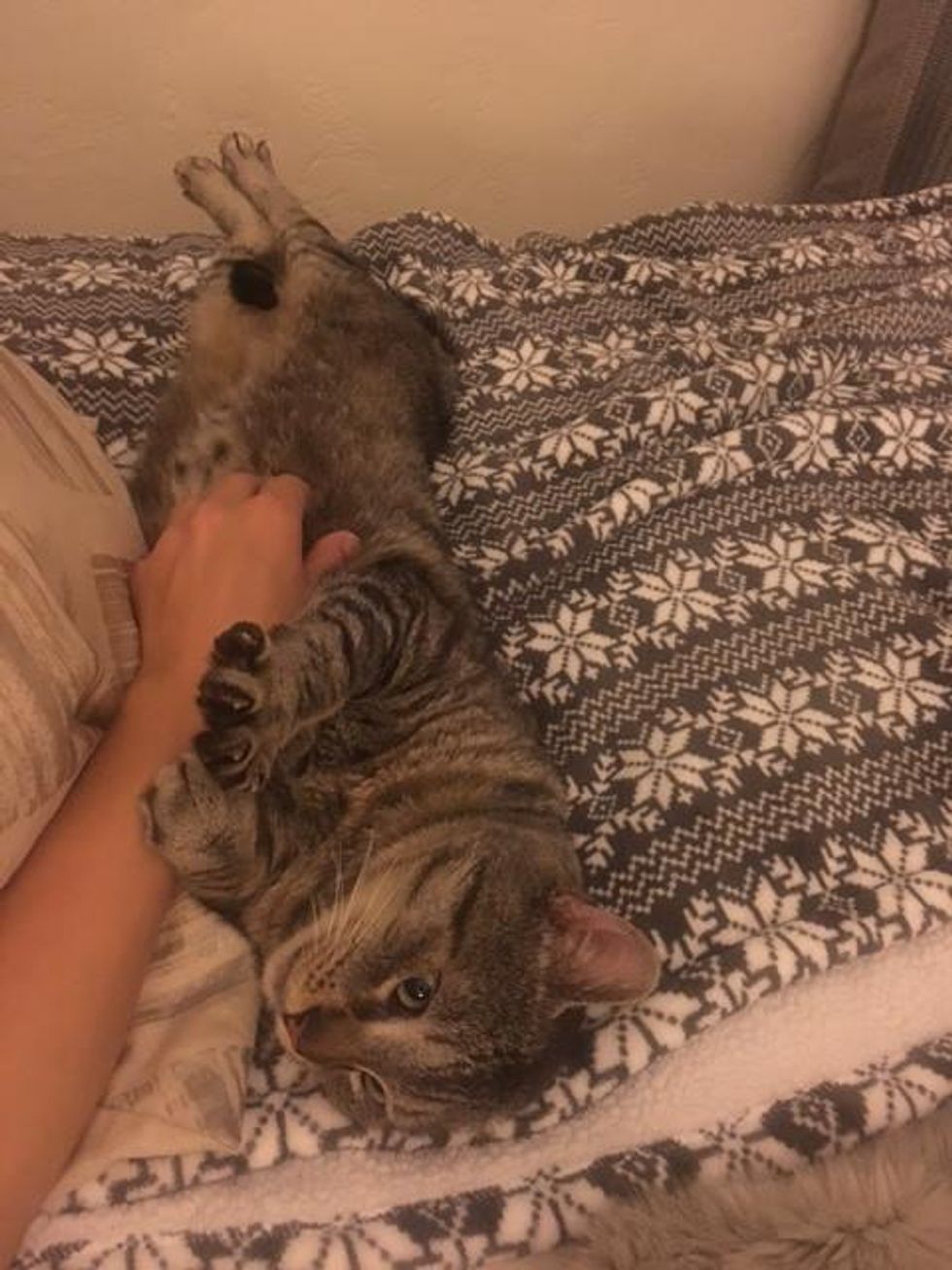 Since then, sweet Valentino hasn't stopped cuddling with his foster mom day and night. The tabby boy has so much love to give.