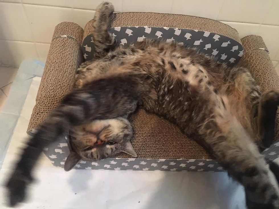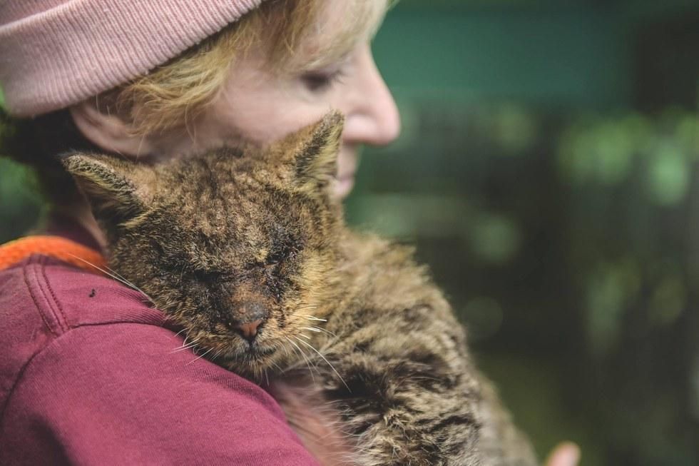 He made the tiniest cry for help and reached out his paw to Elaine with the little strength he had. Elaine put him in her arms, and it was that hug that brought life back into that frail body. He nuzzled on her shoulder and didn't want to let go.