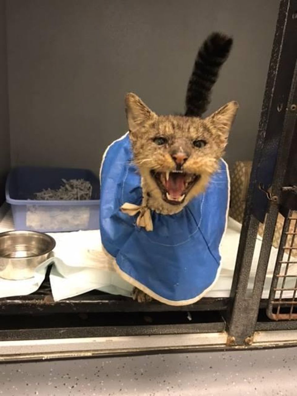 When Elaine Seamans, an avid rescuer, came to his cage, the sweet kitty begged for love.
