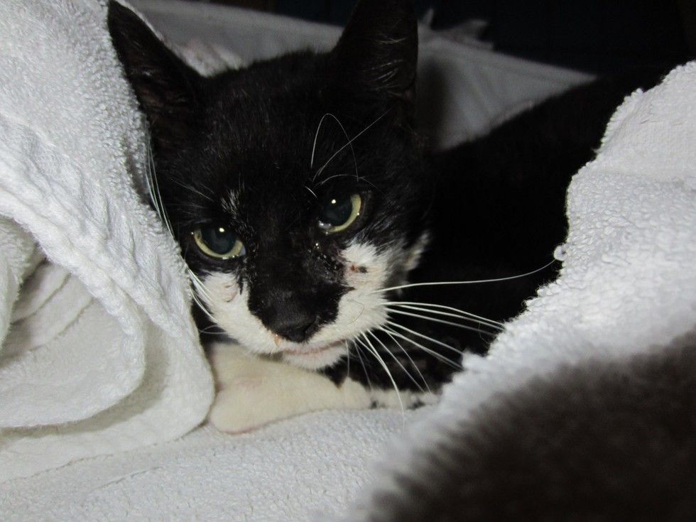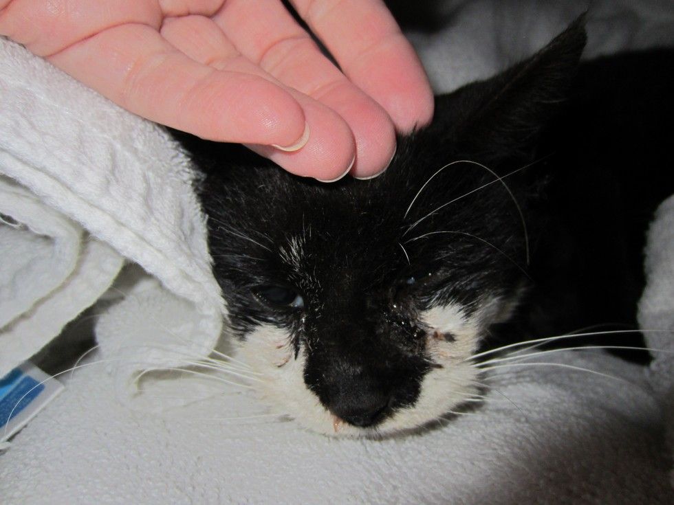 Despite the pain, she never skipped a meal and fought hard to get better. A month into her recovery, the tuxedo girl gave everyone, including the vets, a beautiful surprise.