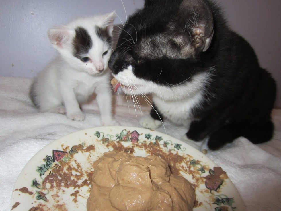 "She had such a great will to live. As I fed the kitten every two hours, Sweetie watched and then waited for me to finish so she could do the rest of the care for Jaax," Wehmann told Love Meow.