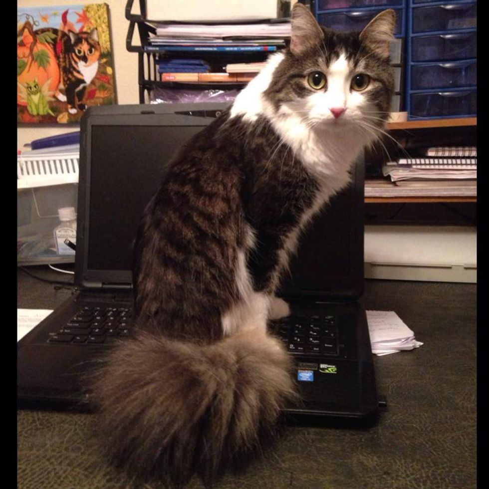 Just like any other cats, Anakin loves to sit on computer keyboards.