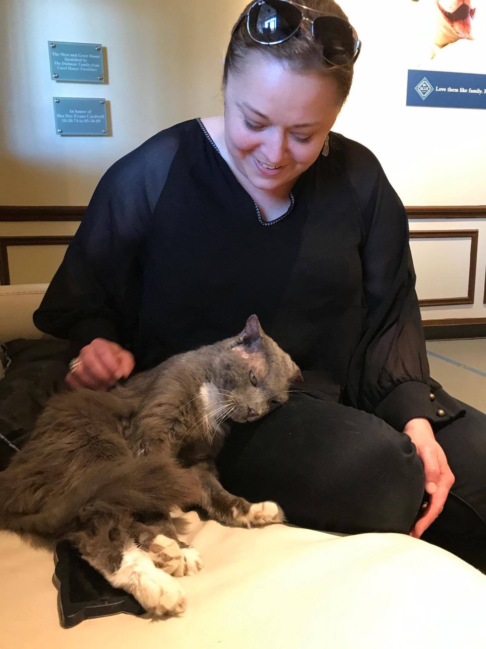 "This amazing person came to meet him. He melted into her lap and of course she took him home."