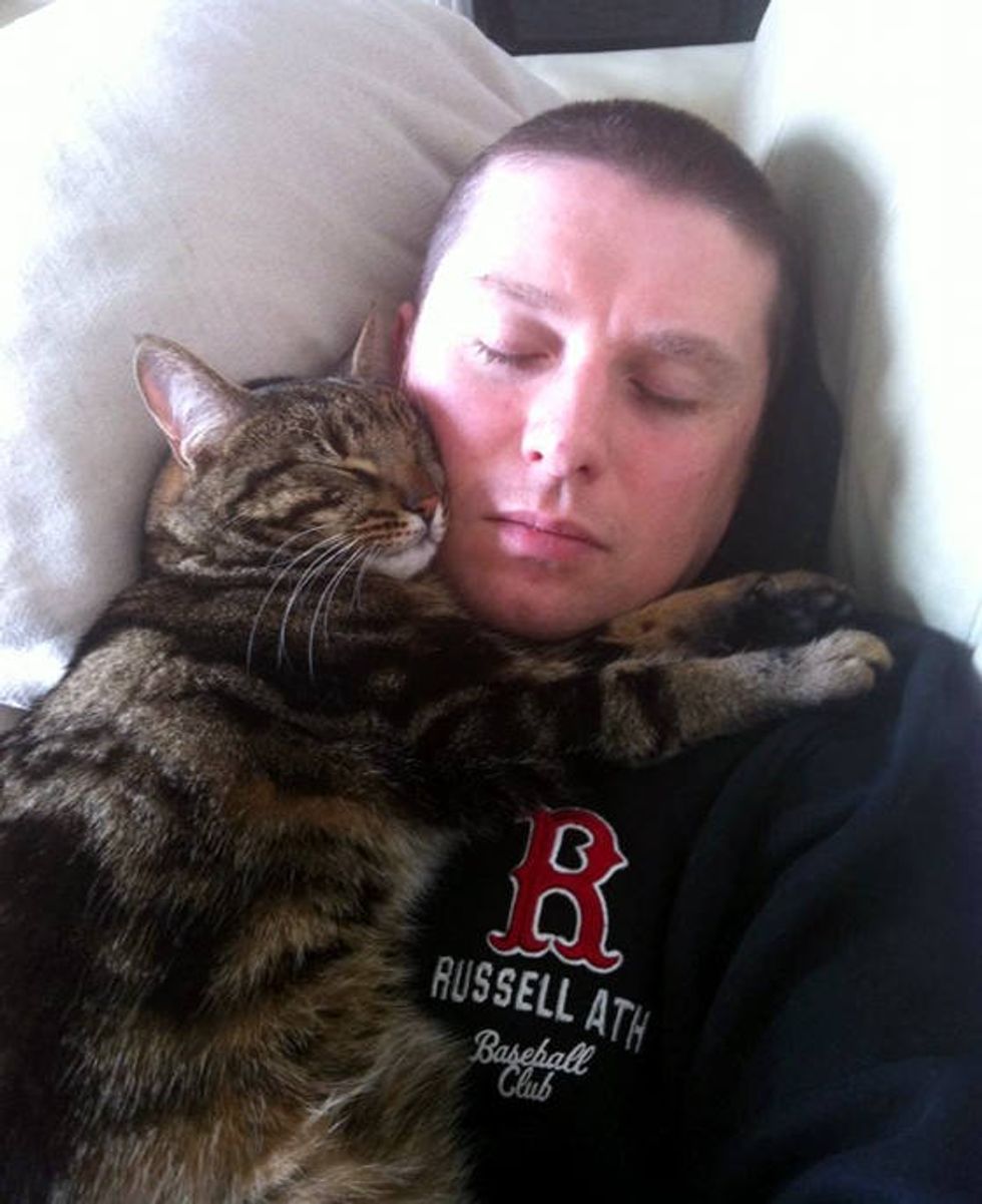 Rory came to the shelter with limited vision and some aggression issues. But with a second chance, this is him having a snuggly nap with his new human dad.